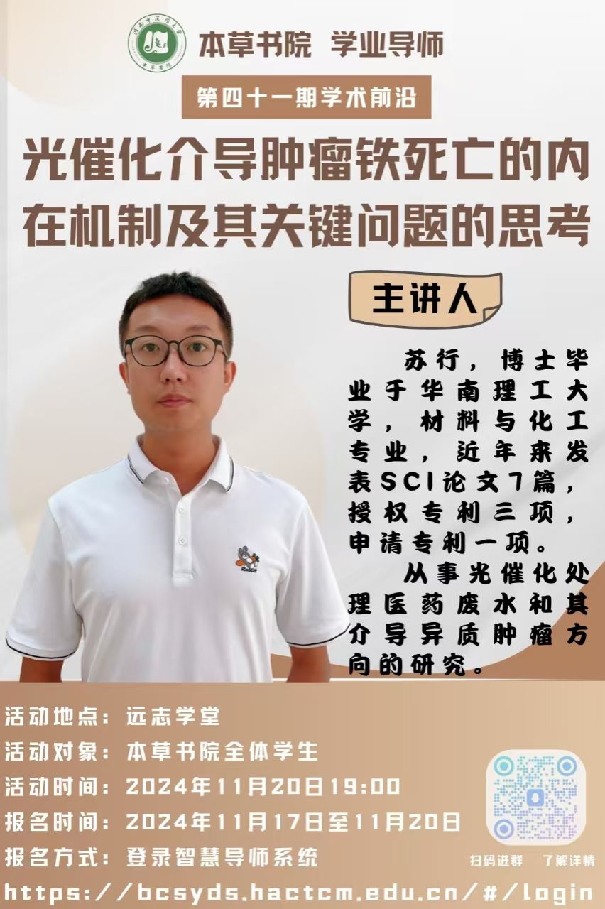 本次讲座旨在普及光催化介导铁死亡的基础知识,展现其科研魅力与广阔应用前景,激发同学们对该领域的浓厚兴趣,鼓励他们勇于探索未知,同时,培养跨学科思维,激发其创新意识,为今后科研或医疗相关工作奠定基础。