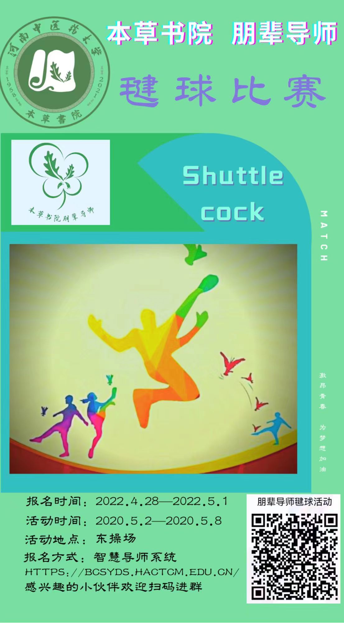 本次毽球活动在于增强同学们的运动意识,展示出新时代大学生的蓬勃朝气,提高运动积极性。以本次体育活动为平台给每一位学生展现自我的机会,在学习之余好好锻炼身体,同时增加同学之间的交流、并促进友谊以充实自己美好的大学生活。