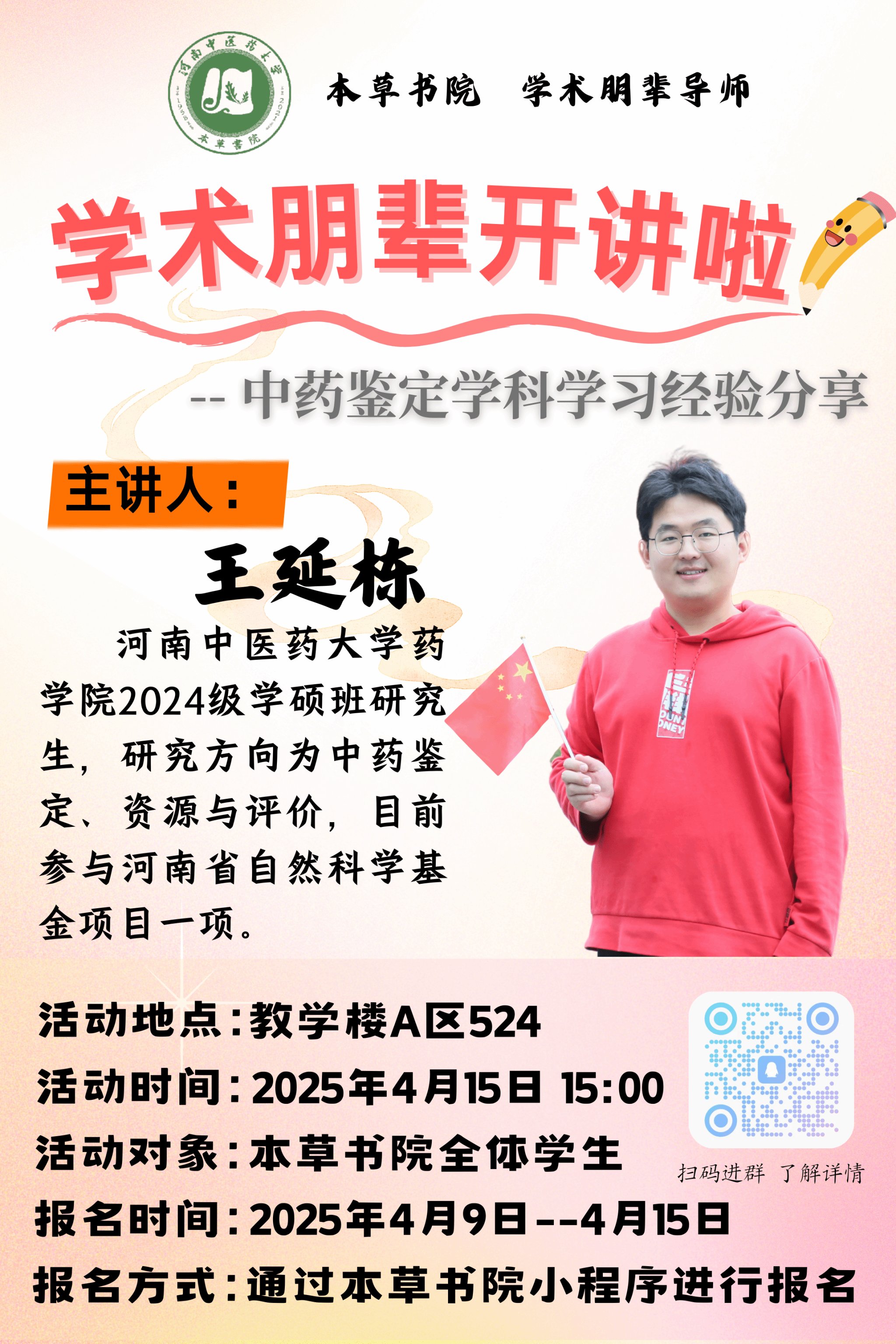 分享人:王延栋,2024级硕士研究生,中药鉴定、资源与评价方向