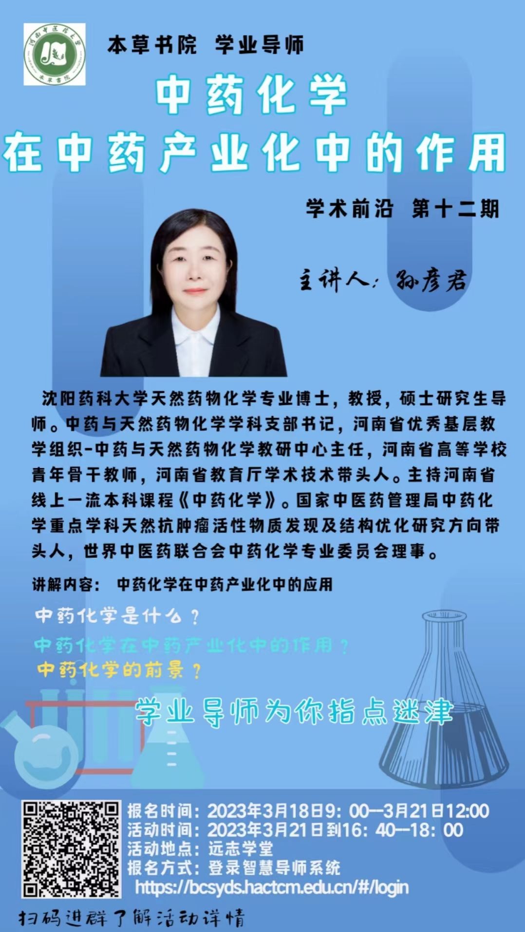 中药产业是我国经济的重要组成部分,中药化学在中药产业化过程中发挥着重要作用。学术前沿第十二期我们邀请到了孙彦君老师为大家讲解中药化学在中药产业化中的应用。