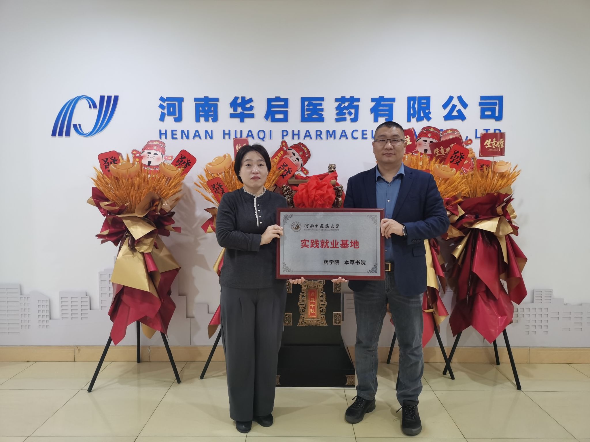 高巍副院长对企业的快速发展及于铁成校友的成长成就给予高度评价,认为其经历为在校学生树立了优秀榜样,并诚邀其返校开展专题讲座,引导学生了解行业趋势、明确人生方向,将个人理想融入中医药事业发展之中。座谈结束后,双方共同参观了企业仓储库房,深入了解其现代化运营模式,并举行实践就业基地授牌仪式,共同合影留念。此次走访进一步加深了学院与校友企业的联系,为后续多领域合作奠定了坚实基础。