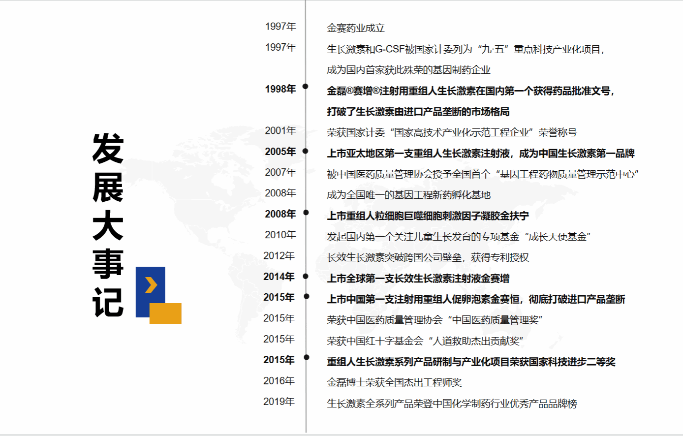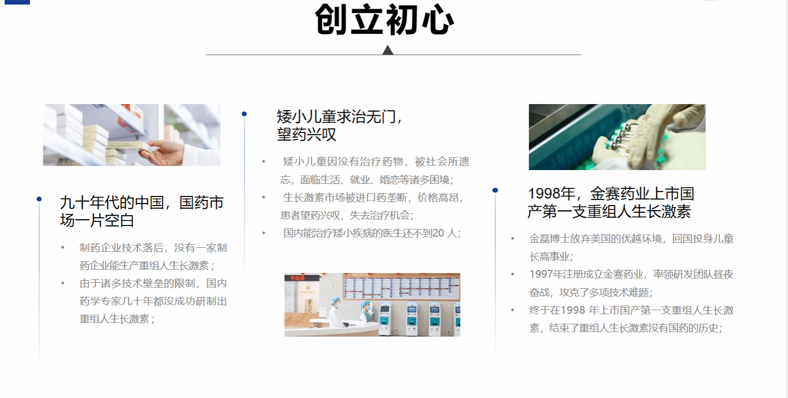 金赛药业是中国基因工程药物质量管理示范中心,国家基因工程新药孵化基地,国家科学技术进步奖获得者,拥有亚洲最大重组人生长激素生产基地,2020年度公益企业、2020年度中国区最佳雇主企业、2021中国区人力资源管理领先企业50强、连续三年荣获中国人力资源管理杰出奖。