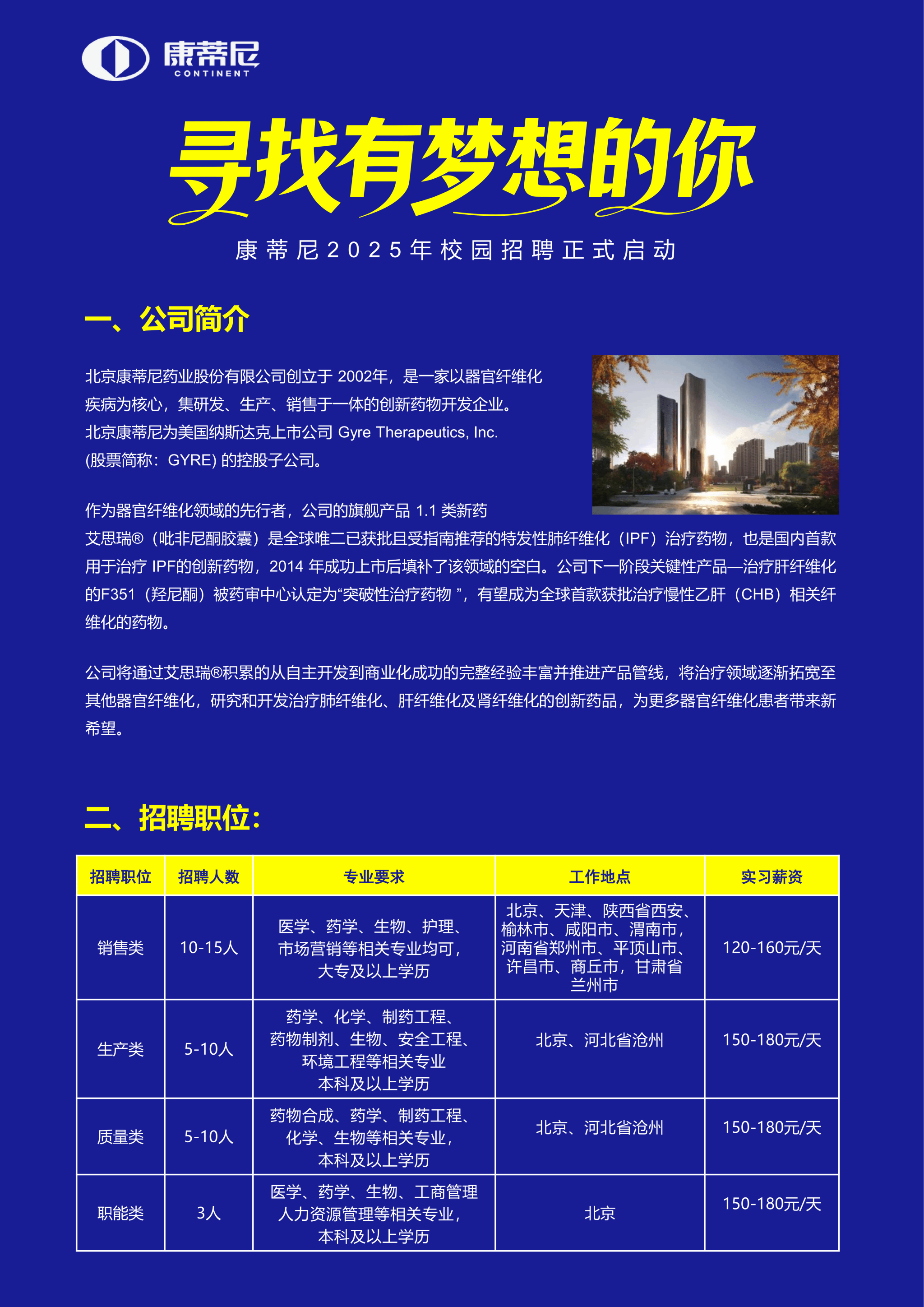 北京康蒂尼药业校园招聘宣传