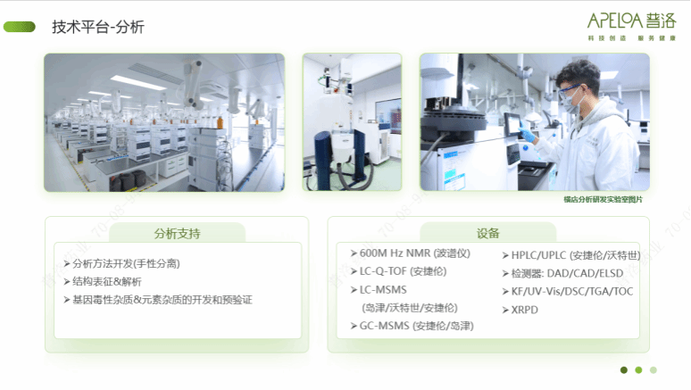 普洛药业的CDMO研发中心始终坚持以“为客户提供经济、优质、高效的一站式服务,加快新药开发及上市历程”为使命,不断提升实验室硬件及软件水平,以支持更高水平的研发项目。具备“化学合成+生物发酵”双轮驱动技术能力和“多客户、多产品”的竞争优势,CDM0业务已经实现“起始物料+注册中间体”向“注册中间体+原料药”模式的转变。